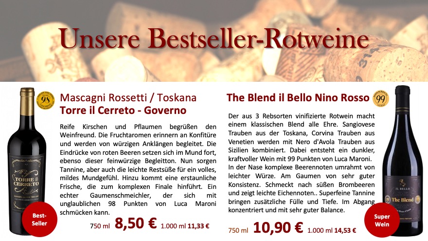 Wir freuen uns, wenn Sie Interesse an unserem Angebot finden. Bitte besuchen Sie uns in unserem Weinhandel. Wir werden Sie bei Ihrem Einkauf persönlich beraten und bedienen.
